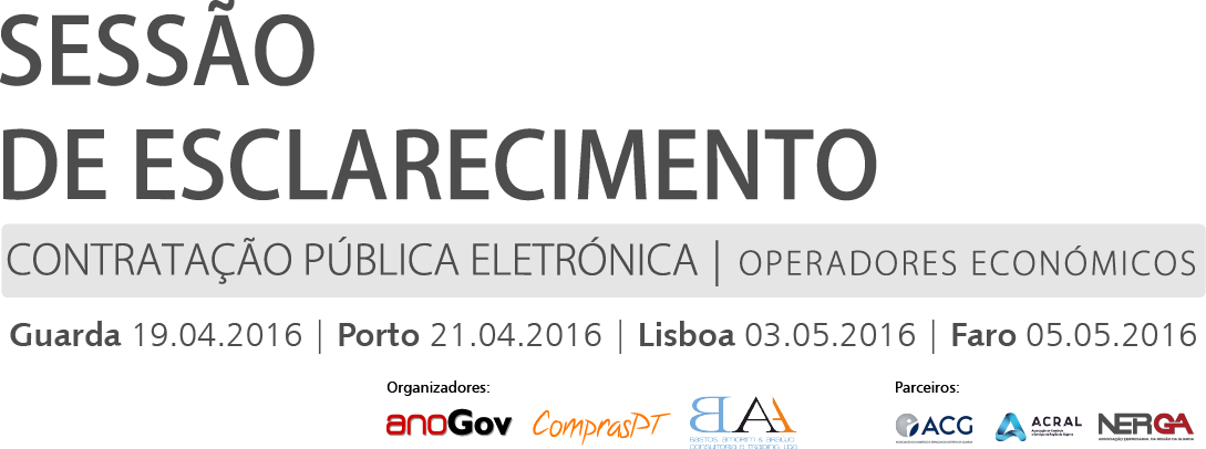 A inscrição nas diferentes sessões pode ser realizada aqui (plataforma anoGov) ou aqui (plataforma ComprasPT).