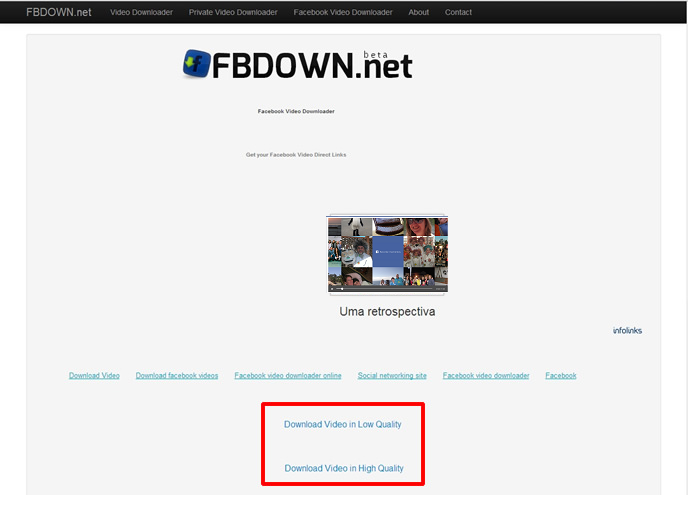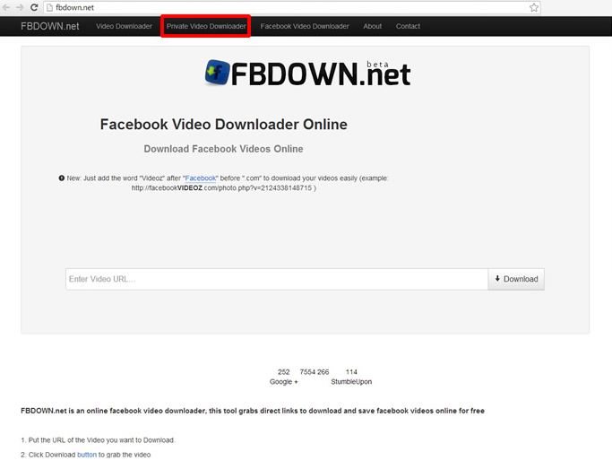 Passo 1. Para extrair o vídeo publicado no Facebook Look Back, acesse a ferramenta Facebook Video Downloader Online e clique na opção “Private Video Downloader”;