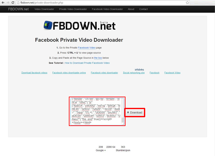 Passo 4. Volte para a ferramenta “Private Video Downloader” da página do FBDOWN.net e cole o código copiado na caixa de texto indicada, apertando “CTRL V”.