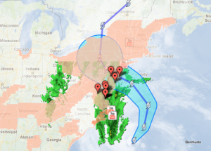 O Google lançou mapas interativos para controlar o caminho do furacão Sandy e fornecer informações de localização de apoio à medida que o furacão se aproxima da costa leste dos Estados Unidos. Um mapa de Nova Iorque inclui a localização dos centros de evacuação e abrigos de emergência criados pela Cruz Vermelha.