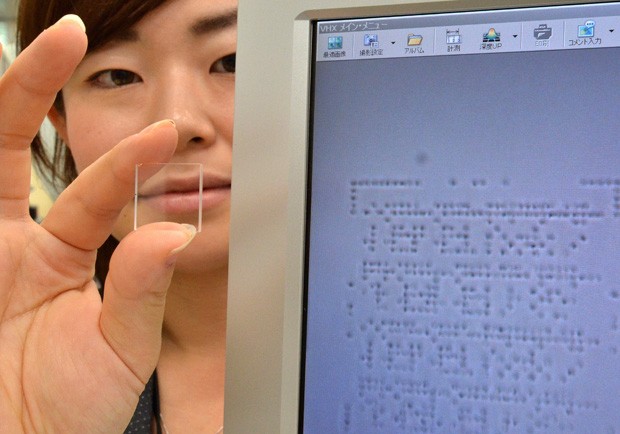 A fabricante Hitachi afirma ter desenvolvido um método para guardar grandes quantidades de dados em uma placa de quartzo que pode armazenar dados por milhões de anos, sem deteriorar.