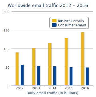 “Devemos mesmo esperar grandes mudanças no modo como nos comunicamos? Empresa projeta que o número de e-mails de negócios vai aumentar 13% ao ano de agora até 2016.“